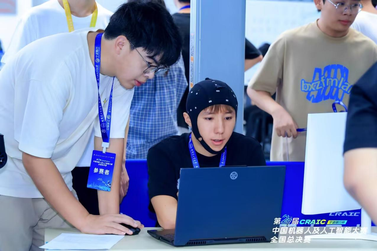 本次大赛由中国机器人及人工智能大赛组委会主办,设有42项一等奖、62项二等奖、61项三等奖及41项优秀奖,竞争尤为激烈。我院余维、赵君喆和黎平国等老师指导的Fighting队(成员:马欣怡、覃雅涵、阳莹莹)和云梦队(成员:王梦、段生成、郑好)成功晋级国赛。意念操控,决胜分毫!我校参赛队员在指挥席上化身“意念雕塑”:身体静止、目光如电,连眨眼都成了挑战。他们全神贯注,仅凭脑电波便精准驾驭小车——从“入口”疾驰入道,穿越“任务区”,最终驶离“出口”。前进后退、左右转向、鸣笛亮灯,一切尽在“脑海”掌控。凭借这非凡的专注力与操控技术,两支队伍在强手如林的全国总决赛中,双双勇夺国家二等奖!