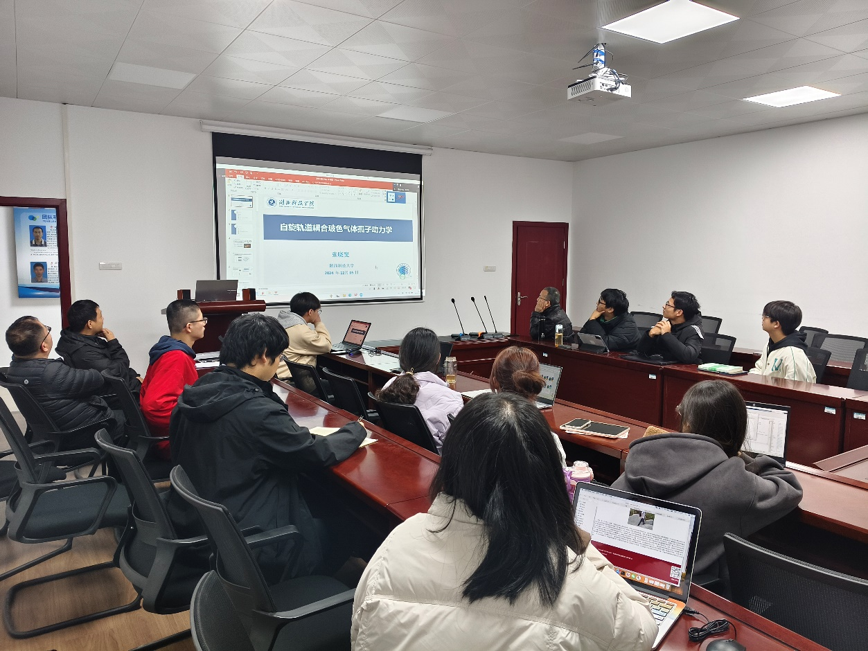 论坛在理工楼四栋304会议室准时开始,由学院院长徐四六教授担任主持人,徐院长代表学院对张晓斐教授的到来表示热烈欢迎。随后,张晓斐教授带来了题为《Quantum vortex and soliton in Rydberg-Dressed Bose-Einstein Condensates》的学术报告。张教授从量子涡旋和孤立子在里德伯修饰玻色-爱因斯坦凝聚体(Rydberg-Dressed Bose-Einstein Condensates)中的表现入手,深入探讨了这些非线性现象的物理机制和调控方法。他提到,里德伯修饰技术为探索量子气体的非线性动力学提供了新的视角,通过精确调控原子间的相互作用,可以观察到量子涡旋和孤立子的形成、演化以及相互作用过程。这些研究成果不仅丰富了我们对量子物质基本性质的理解,也为开发新型光电传感器、量子计算器等提供了理论基础和技术支撑。在报告中,张教授还展示了其团队在里德伯修饰玻色-爱因斯坦凝聚体实验方面的最新进展,包括高精度测量技术、量子态操控方法等。他强调,这些实验技术的发展为孤立子调控技术的应用提供了坚实的基础,未来有望在量子通信、量子计算等领域实现突破。