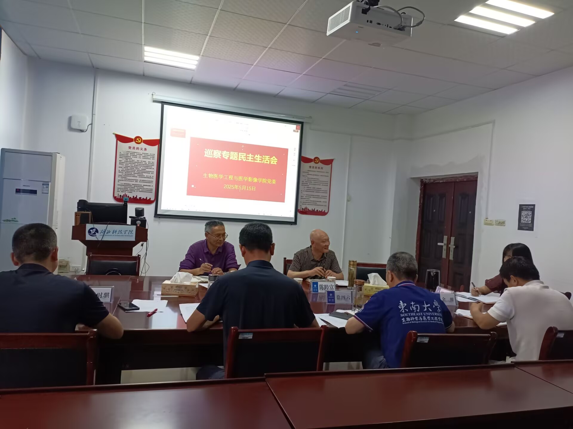 5月15日下午,tyc5997太阳集团党委召开巡察整改专题民主生活会,巡察工作领导小组办公室主任黄瑞春、学校第二轮巡察第三巡察组副组长陈睦富到会指导,学院领导班子成员参加会议,三办主任、支部书记列席会议。