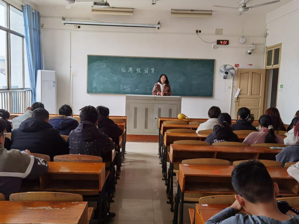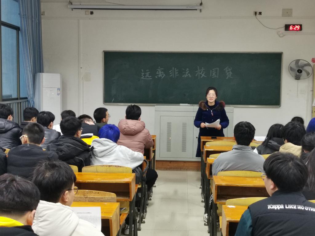 会上,班主任通过案例介绍了不良网贷对大学生的危害与诱惑力以及没能偿还时平台逼迫的手段,教导学生:1、树立正确的消费观和金钱观;2、增强自我保护意识,不攀比、不盲目;3、三思而后行,不要轻易相信借贷广告;4、看管好自己的学生证件和身份证件,不能给某些人钻空子的机会。5、如果真的陷入骗局之中,一定要立马报告老师,不要因难以启齿而越陷越深。会后,各班还在班级中进行了非法校园贷案例的排查。