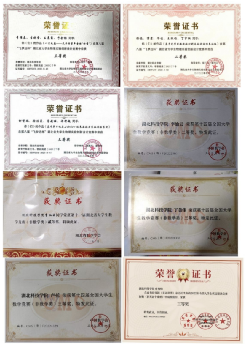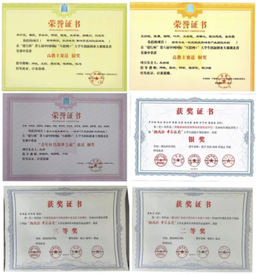 五、学生获省部级奖项荣誉证书